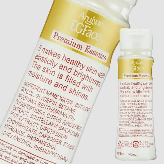 水、BG、グリセリン、ベタイン、ニコチアナベンタミアナヒト遺伝子組換オリゴペプチド-1、ユズ果実エキス、オウゴン根エキス、グリチルリチン酸2K、カルボマー、水酸化Na、プロパンジオール、1,2-ヘキサンジオール、フェノキシエタノール
