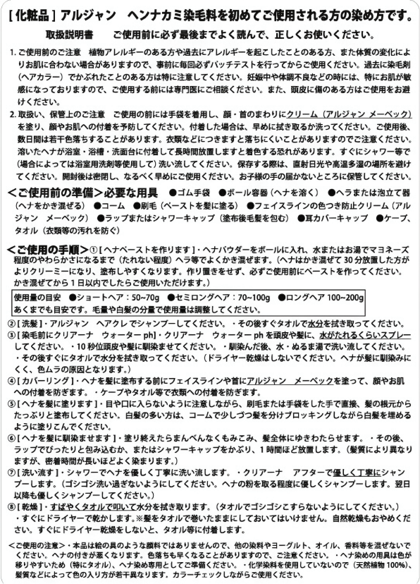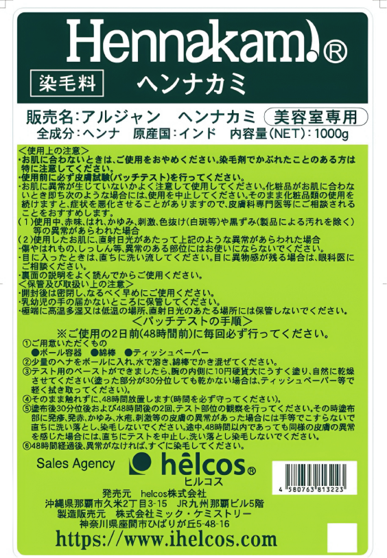 【備 考】 化粧品登録/美容室専用ヘナパウダー