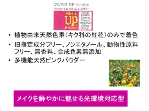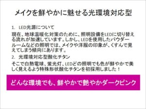 タルク、セルロース、酸化チタン、ラウロイルリシン、ベニバナ赤、シリカ、水酸化Al、フェノキシエタノール