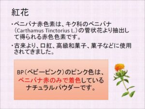 タルク、セルロース、酸化チタン、ラウロイルリシン、ベニバナ赤、シリカ、水酸化Al、フェノキシエタノール