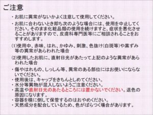 本製品はお肌に合わない場合、または効果には個人差がありますので、あらかじめご了承下さい。